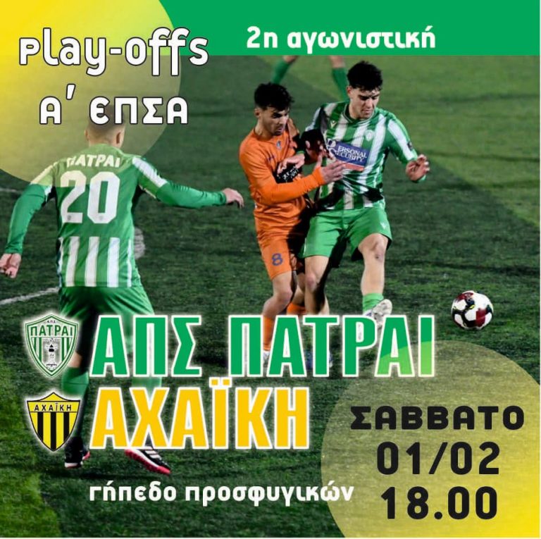 Ο ΑΠΣ Πάτραι για τη δεύτερη αγωνιστική των πλέι-οφ της Α΄Κατηγορίας, υποδέχεται το Σάββατο (1/2 και ώρα 18.00) την Αχαϊκή στο γήπεδο των Προσφυγικών.